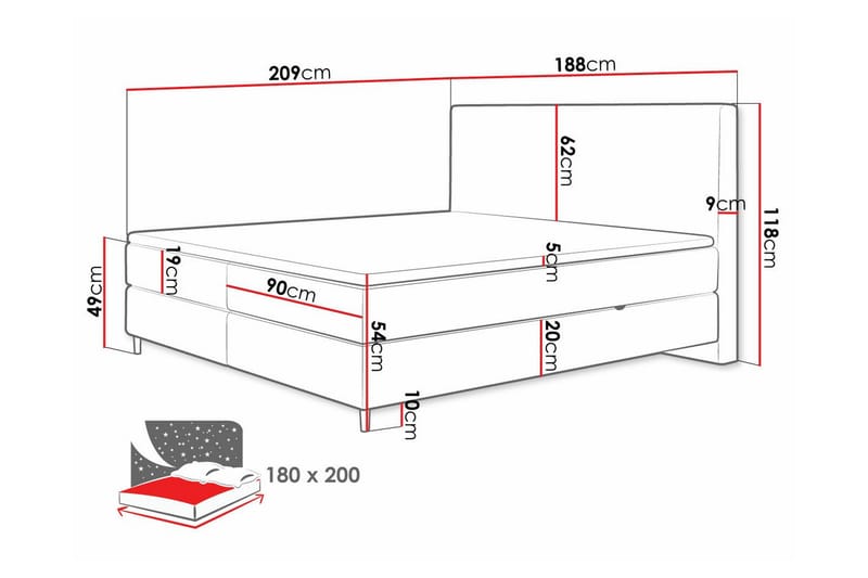 Sängynrunko Derry 180x200 cm Harmaa/Vaaleanharmaa