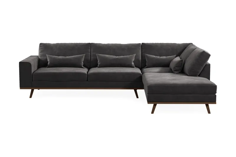 Scandinavian Choice Copenhagen 4-istuttava Oikeakätinen L-muotoinen Divaanisohva Sametilla Tummanharmaa