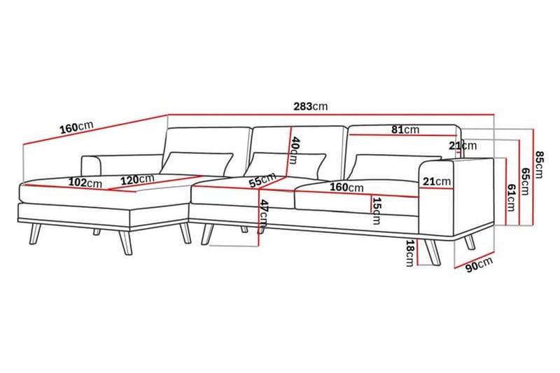 Scandinavian Choice Copenhagen 4-istuttava Vasenkätinen L-muotoinen Divaanisohva Sametilla Tummanharmaa