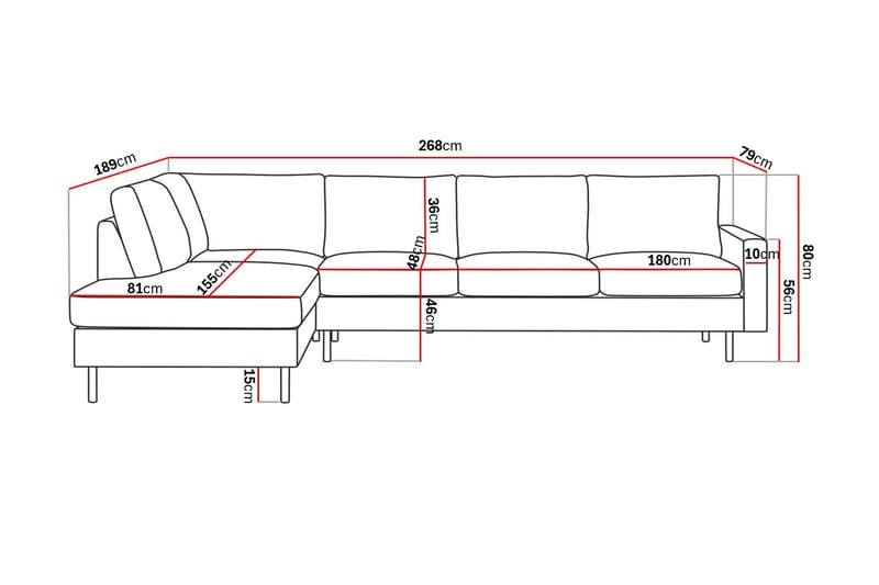 Scandinavian Choice Peppe 4-istuttava Vasenkätinen L-muotoinen Divaanisohva Kankaasta Tummanharmaa