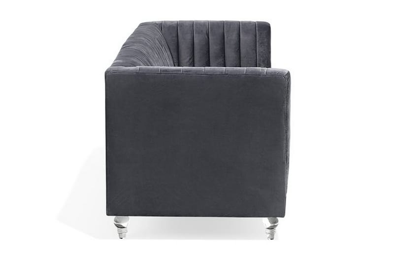 Mukava ja pehmeä sohva. Hienostunut kolmen istujan sohva kutsuu sinua rentoutumaan syleilyynsä. Sametti on kosketukselle pehmeää, ja istuintyynyt on täytetty paksusti, jotta rentoutuminen on taattu. Koristeelliset akryylijalat yhdessä koristeompeleen kanssa korostavat sohvan ylellisyyden tunnetta. Klassinen sohva modernilla käänteellä kotiin kuin kotiin.
