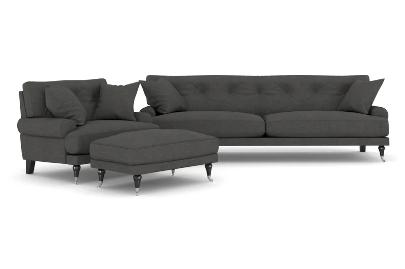 - Ryhmään kuuluu 3:n istuttava sohva, nojatuoli ja jalkarahi.