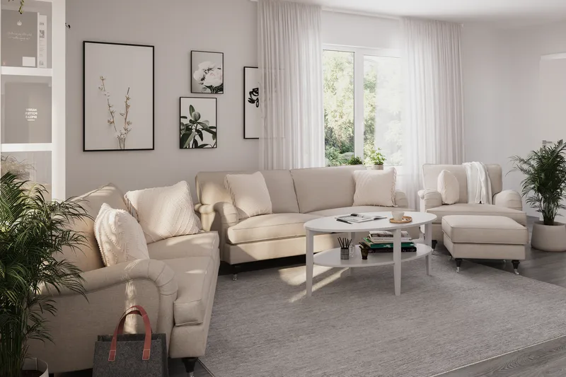 Oxford Classic tunnetaan eleganteista yksityiskohdistaan, jotka tuovat tilaan ylellisyyden tunteen. Sohvaryhmä koostuu yhdestä 3,5-istuttavasta sohvasta, yhdestä 3-istuttavasta sohvasta sekä nojatulista ja rahista. Kokonaisen sohvaryhmän hankkimisessa säästät aikaa toisiinsa yhteensopivien huonekalujen valitsemisessa ja saat valmiiksi kalustetun olohuoneen kerralla ja vieläpä edulliseen hintaan!