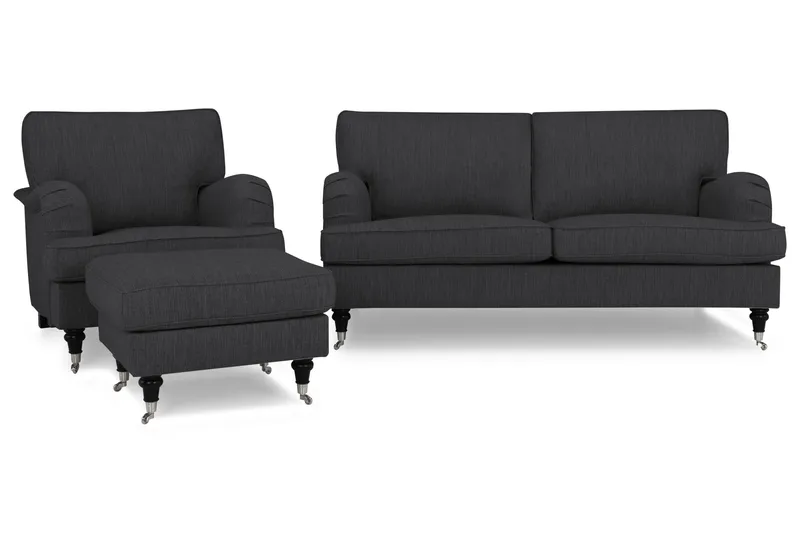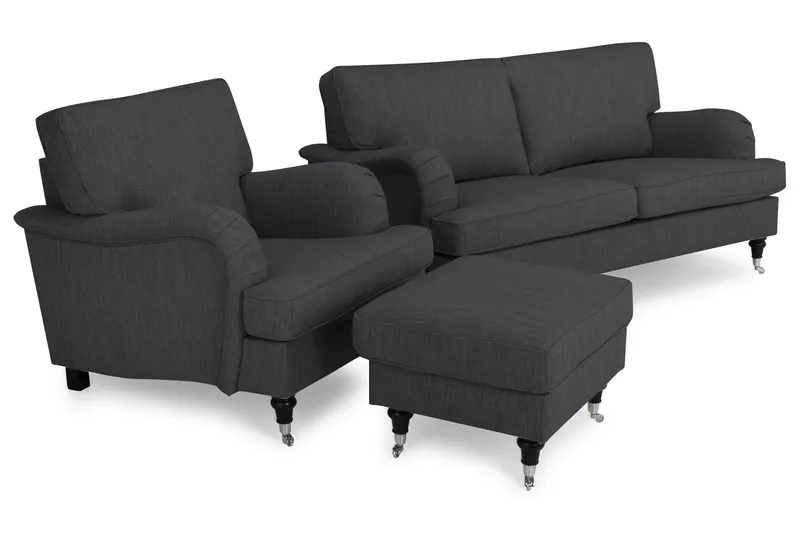Bloomington Sohvaryhmä Oxford Classic 3:n ist+Nojatuoli+Jalkarahi Antrasiitti