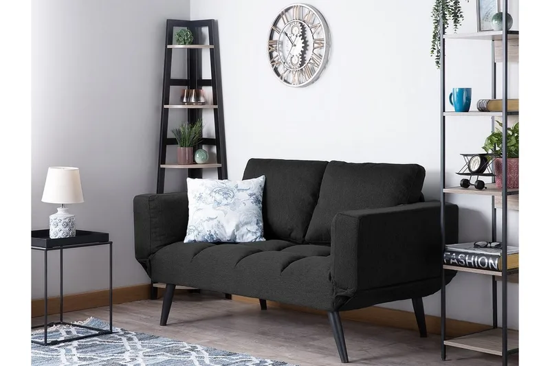 Ominaisuudet: Muuntuu helposti sängyksi, Paksusti pehmustettu mukavuuden takaamiseksi, Moderni muotoilu, Tukeva runko, Jaloissa tapit lattian suojaamiseen, Säädettävät käsinojat