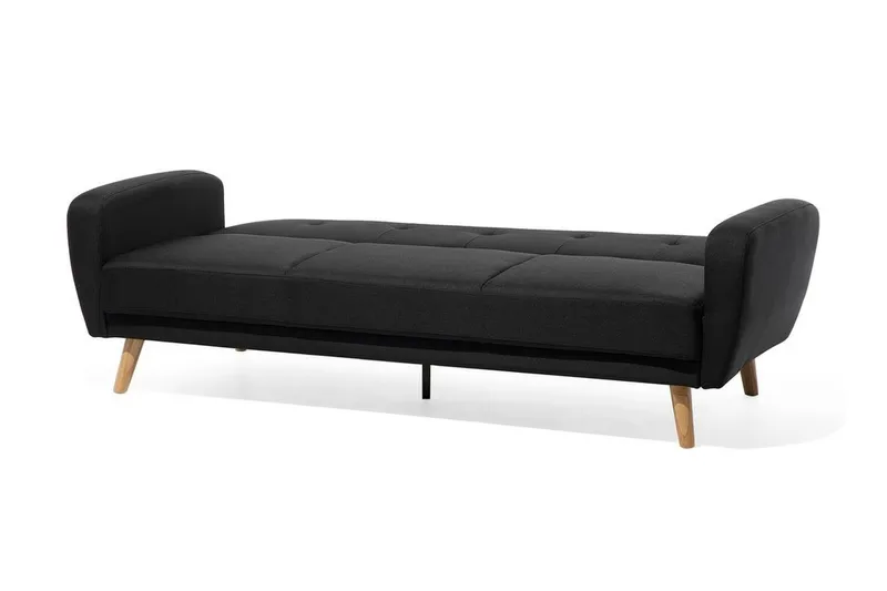 Upea säädettävä sohva. Moderni sohva retrolla vivahteella, joka säästää tilaa. Sen selkänoja on helppo taittaa alas sängyksi, kun taas runsaasti pehmustettu istuin tarjoaa parhaan mahdollisen mukavuuden. Sohva on verhoiltu kestävällä polyesterikankaalla, joka on viimeistelty tuftatuilla koristenapeilla. Kaltevat kumipuujalat tarjoavat vakautta yhdessä puisen rungon kanssa. Tyyliltään sohva on helppo sijoittaa osaksi esimerkiksi skandinaavista sisustusta.