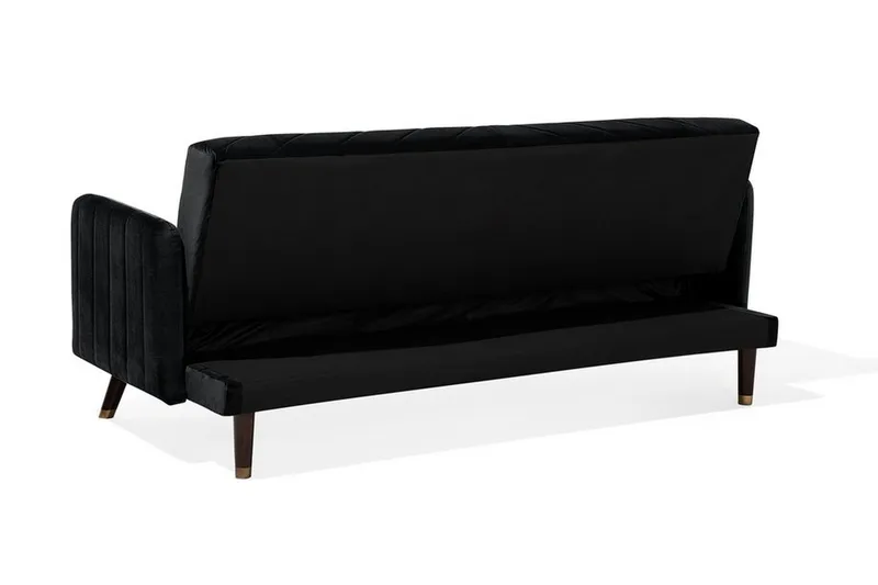 Retrotyylinen säädettävä sohva. Tämä vuodesohva on täydellinen lisä moniin erilaisiin sisustuksiin, vuosisadan puolivälin tyylisistä moderneihin tai glamour-tyylisiin. Säädettävän selkänojan vinot koristeompeleet ja tumman sävyiset kumipuujalat antavat sohvalle skandinaavisen ilmeen. Miellyttävän tuntuisella, mustan sävyisellä samettikankaalla verhoiltu runko saa sohvan näyttämään viihtyisältä ja kutsuvalta. Paksusti pehmustetut istuimet ja selkänoja takaavat maksimaalisen mukavuuden. Vuodemekanismin ansiosta sohva on helppo taittaa sängyksi tarpeen vaatiessa.
