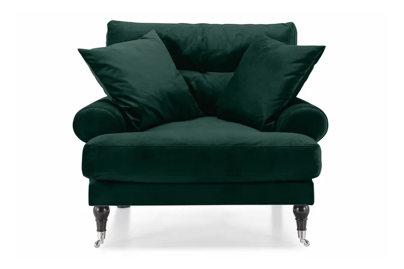 Webber on tyylikäs ja ylellinen nojatuoli. Ylellinen verhoilukangas ja upeat, metallipyörälliset jalat ovat tyylivarma yhdistelmä. Reilu istuinsyvyys ja -leveys takaavat miellyttävän mukavuuden istumiseen ja oleiluun.