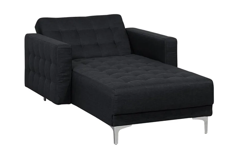 Moderni tuftattu säädettävä divaani. Puhtaat linjat ja mukavuus ovat tämän divaanin ominaisia piirteitä. Sen runko on verhoiltu kokonaan korkealaatuisella polyesterikankaalla ja viimeistelty tyylikkäällä tuftauksella. Säädettävän selkänojan ja napsautettavan mekanismin ansiosta se muuttuu viihtyisäksi vuoteeksi. Elegantti grafiitinharmaa väri sopii useisiin sisustuksiin ja värimaailmoihin. Modulaarisen muotoilunsa ansiosta se voidaan yhdistää muihin malliston kalusteisiin sopivan istuinkokonaisuuden luomiseksi. Se on erittäin vakaa hopeanväristen metallijalkojensa ansiosta.