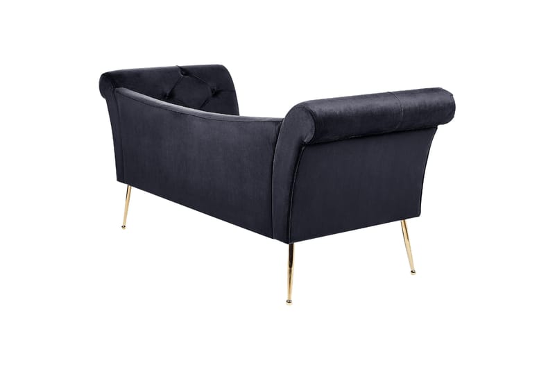 Ylellinen tuftattu lepotuoli. Luo ylellinen ilme makuuhuoneeseen tai olohuoneeseen tällä tyylikkäällä divaanilla. Sen runko on verhoiltu miellyttävän tuntuisella sametilla. Ylellinen muoto, kaareva selkänoja ja pyöristetyt käsinojat saavat sen näyttämään erityisen hyvältä etenkin glamour-, retro- tai vintage-tyylisissä sisustuksissa. Istuimen ja käsinojien nappituftaus täydentää kullanvärisiä metallijalkoja kauniisti. Muotoilu tarjoaa mahdollisuuden nojata kumpaan laitaan tahansa, joten lepotuolilla on mahdollista rentoutua usein eri tavoin. Käytä divaania nojatuolin paikalla tai koristeellisena korosteena.