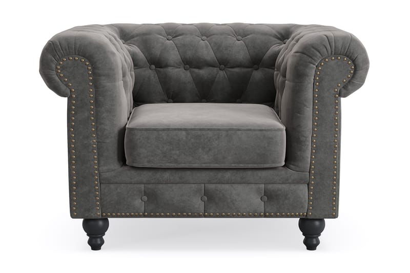 Manor House Nojatuoli Chesterfield Deluxe Tummanharmaa