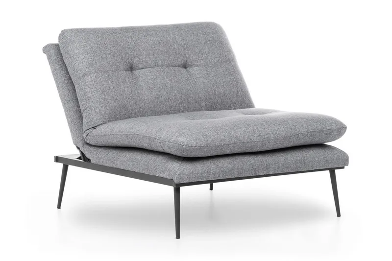 Nojatuolin istuinsyvyys on 65 cm, joten voit istua mukavasti ja rentoutua. Sen leveys divaanilla on 90 cm, mikä antaa sinulle lisää tilaa levätä ja rentoutua. Nojatuolin jalkojen väri on musta, mikä luo kontrastia harmaalle värille.