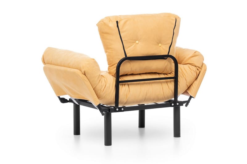 Nojatuolin istuinleveys on 60 cm, joten siinä on runsaasti tilaa istua mukavasti. Pilling-luokitus on 4/5, mikä tarkoittaa, että kangas kestää hyvin kulumista ja säilyttää ulkonäkönsä pitkään. Mustat jalat luovat kontrastia keltaiselle istuinosalle ja antavat tuolille modernin ilmeen.