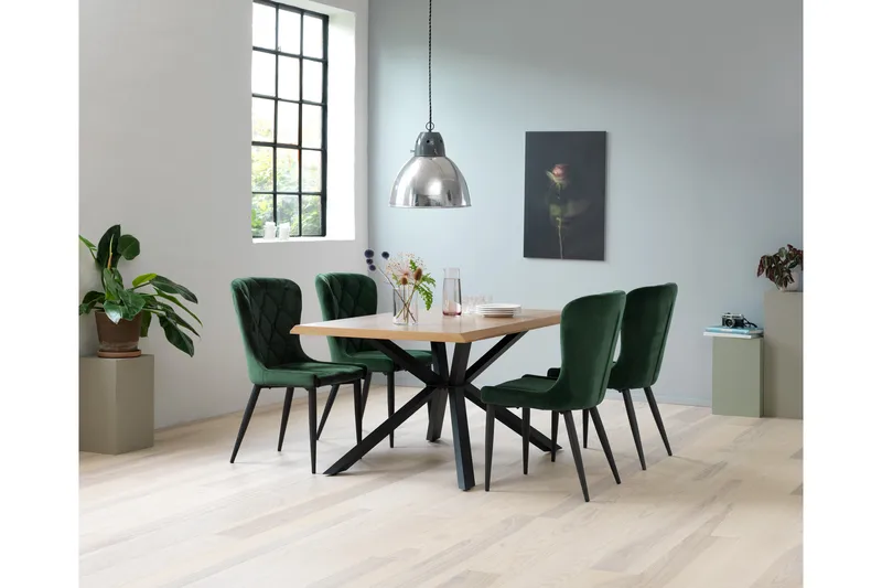 Ruokatuoli Mevito on täydellinen valinta ruokapöydän ympärille. Tämä tyylikäs tuoli on suunniteltu tarjoamaan sekä mukavuutta että tyylikkyyttä sisustukseesi. Kangasverhoilu ja vihreä väri tuovat raikkaan ilmeen ruokailutilaan.