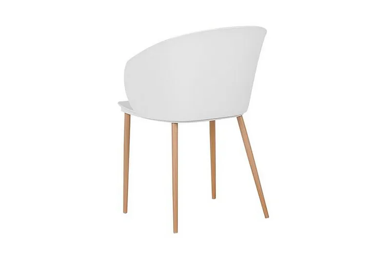 Tyylikkäät muovituolit kaarevilla selkänojilla. Käytännölliset ruokapöydän tuolit ovat välttämättömyys jokaisessa ruokailutilassa, oli se sitten keittiö tai ruokailuhuone. Tuolit ovat tyyliltään moderneja ja ajattomia. Jalat ovat kestävät, sillä ne on tehty metallista ja modernin ilmeen viimeistelemiseksi maalattu vaaleaa puuta muistuttaviksi.