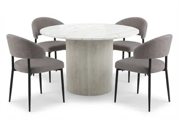Uppveda Ruokapöytä 120 cm Pyöreä Valkoinen ja 4 Sawako Greige Tuolia