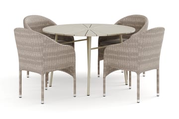 Tunis ulkokäyttöön tarkoitettu pyöreä ruokailuryhmä 120 cm, jossa 4 Jenny-ruokatuolia