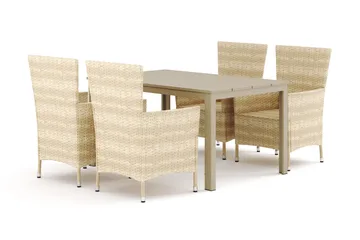Tunis-ulkokäyttöön tarkoitettu pyöreä ruokailuryhmä 120 cm, 4 säätötuolia