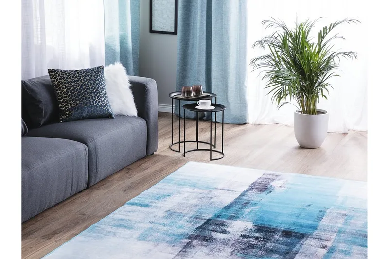 Moderni abstrakti olohuoneen matto. Tuo taiteellista henkeä mihin tahansa sisustukseen tällä abstraktin kuvioinnin matolla. Vaimeiden sinisten sävyjen lisäksi siinä on silauksia mustaa ja valkoista, jotka ankkuroivat huoneen sisustuksen, esitellen luovuuden ja tyyneyden ilmapiirin. Ajattoman suunnittelun ansiosta tämä matto sopii niin moderniin makuuhuoneeseen kuin vanhanaikaiseen oleskelutilaan.