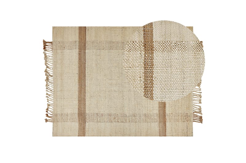 Käsintehty matto hapsuilla. Tämä tyylikäs matto on täydellinen lisä mihin tahansa luonnolliseen tai boho-tyyliseen sisustukseen. Matto on käsintehty korkealaatuisesta ja kestävästä juutista. Koristeelliset hapsut ja geometrinen kuviointi saavat maton sopimaan hyvin esimerkiksi juutti- tai puukalusteiden kanssa.
