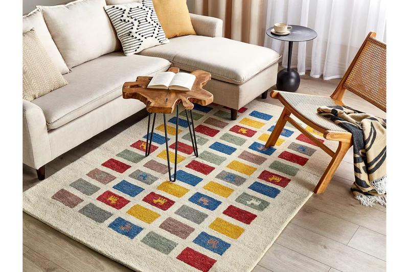 Rustiikkinen villamatto geometrisella kuvioinnilla. Anna kodillesi kodikas ja mukava tunnelma tällä käsin tuftatulla villamatolla. Sen tiheä mutta pehmeä matala nukka tuo sekä visuaalista että fyysistä lämpöä mihin tahansa tilaan. Monivärinen geometrinen kuviointi sekä eläinkuviot tekevät matosta täydellisen lisän moderneihin, perinteisiin ja rustiikkisiin sisustuksiin. Maton takaosa on valmistettu puuvillasta, jonka ansiosta mattoa voidaan käyttää myös lattialämmitetyissä makuuhuoneissa tai olohuoneissa.
