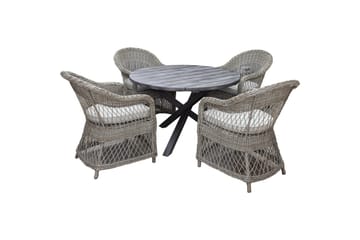 Ulkomöbeliryhmä Ø 112 cm pöytä & 4 Merida luonnonväriset tuolit Harmaa