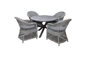 Ulkomöbeliryhmä Ø 112 cm pöytä & 4 Merida harmaat tuolit Harmaa