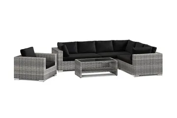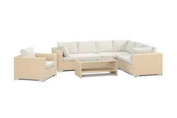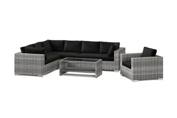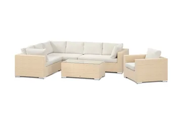 Bahamas ulko-L-sohva vasen 7-hengen, nojatuoli ja pöytä