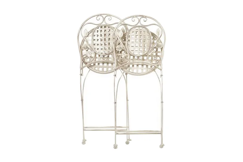 Taitettavat tuolit. Tuo parvekkeellesi tai pihallesi provencelaista tunnelmaa näillä eleganteilla puutarhatuoleilla. Jauhemaalatusta raudasta valmistetuissa tuoleissa on kaunis avonainen muotoilu, upea kukkakuvio ja kulunut viimeistely, jonka ansiosta ne tuovat maalaisromanttista ilmettä puutarhaan. Yhdistä tuolit yhteensopivan pöydän kanssa luodaksesi täydellisen paikan nauttia aamupalaa tai lounasta ulkoilmassa. Tuolit ovat kokoontaitettavissa, joten niitä on helppo säilyttää, kun ne eivät ole käytössä. Nauti kesäpäivistä ja raikkaasta ulkoilmasta perheen tai ystävien kesken.