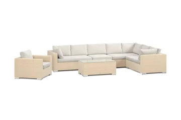 Bahamas U-muotoinen ulkolounge-ryhmä avoimella päädyllä, 8-hengen, pöytä ja hylly