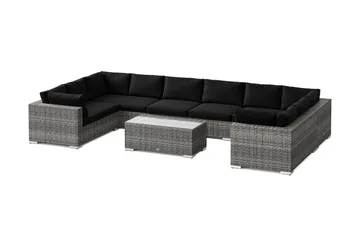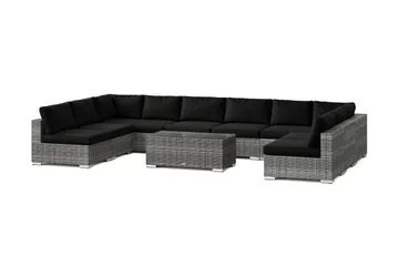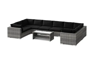 Bahamas U-muotoinen ulkolounge-ryhmä avoimella päädyllä, 9-hengen, pöytä ja hylly