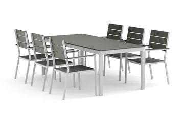 Tunis ulkokäyttöön ruokailuryhmä 205x90 cm, 6 Sanna-säätötuolilla