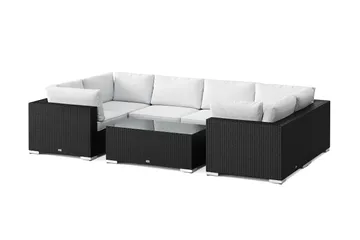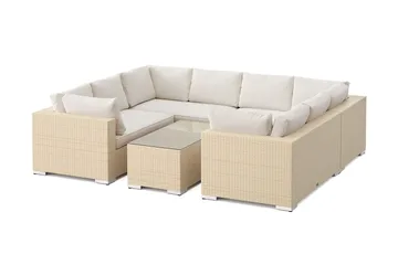 Bahamas ulkokäyttöön U-sohva 7-istuttava, käännettävä divaani, avoin pääty ja pöytä