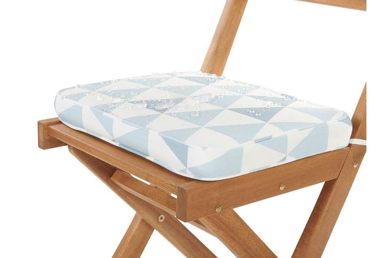 Rustiikkinen parvekesetti geometrisesti kuvioiduilla istuintyynyillä. Tämä hurmaava bistrosetti on täydellinen lisä merellisiin tai rustiikkisiin puutarhoihin ja parvekkeille. Kahdesta tuolista ja sirosta puutarhapöydästä koostuva setti on valmistettu vankasta ja kestävästä akaasiasta, joten ne näyttävät hyviltä vuosien ajan. Kokoontaitettavien ominaisuuksiensa ansiosta kalusteet ovat helppoja varastoida käyttökauden loputtua tai kun ne eivät ole käytössä. Mukana tulevat siniset, kuvioidut istuintyynyt takaavat mukavuuden. Minimalistisen muotoilunsa ja neutraalin värinsä ansiosta kalustesetti on helppo yhdistää moniin erilaisiin ulkosisustuksiin.