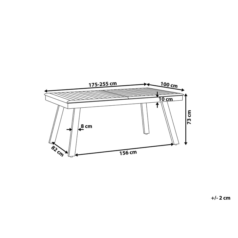 Puutarhan ruokailuryhmä kuudelle hengelle. Nauti aterioista ulkona puutarhassasi tai terassillasi yhdessä perheen ja ystävien kesken tämän ulkoruokailuryhmän ääressä. Vankasta mutta kevyestä alumiinista valmistetut kalusteet ovat UV-säteilyn kestäviä, jonka ansiosta niiden väri ei haalistu vuosien aikana. Kiiltävä sälepöytälevy on helposti jatkettavissa, jolloin pöytä tarjoaa tilaa jopa 8 hengelle. Pinottavat tuolit tarjoavat mukavan istumakokemuksen. Tuolien istuimet ja selkänojat on varustettu harmaalla polyesterillä. Neutraalien väriensä ansiosta puutarhakalustesetti sopii loistavasti moderneihin tai perinteisiin ulkotiloihin.