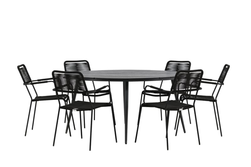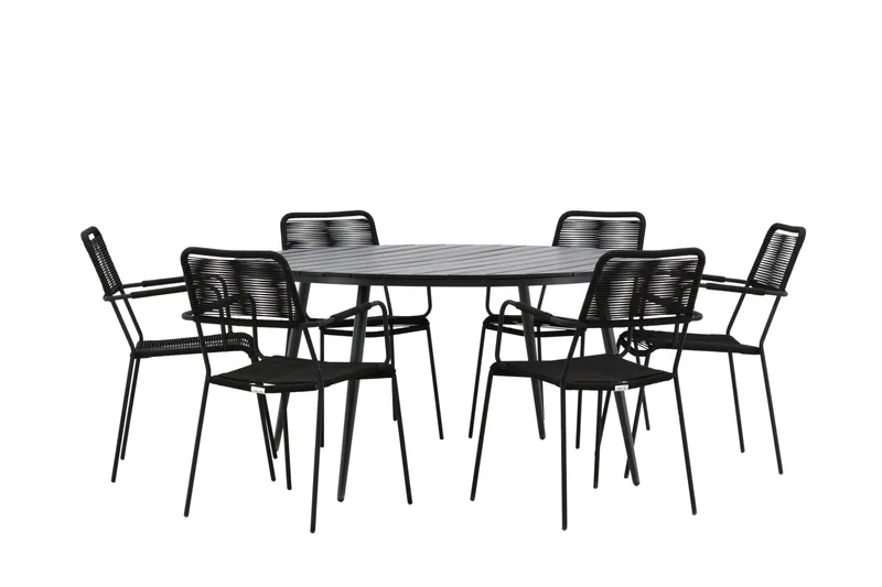 Venture Home Ruokailuryhmä Break Pyöreä 120 cm 6 Lindos tuolia Musta