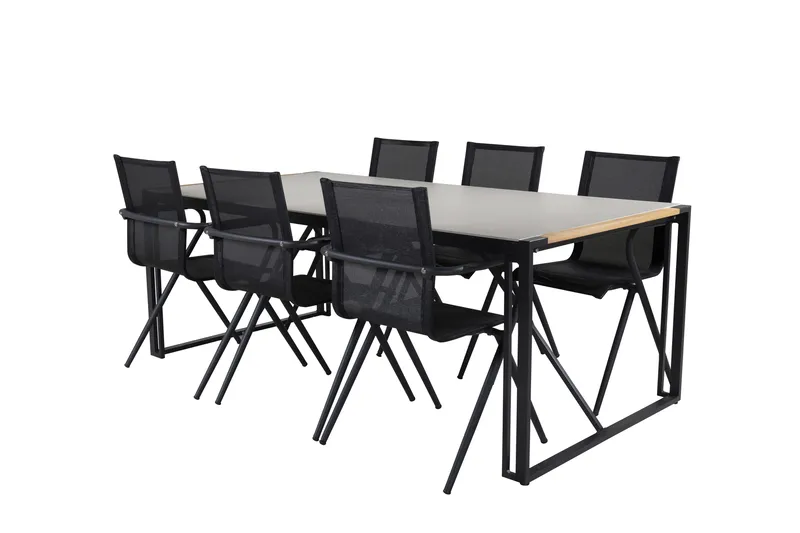 Venture Home Ruokailuryhmä Texas 200 cm 6 Alina tuolia Musta/Harmaa