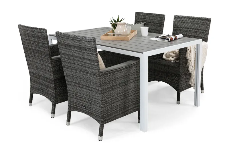 Ruokailuryhmä Tunis 150x90 cm 4 Thor Lyx tuolia Valkoinen/Harmaa/Aintwood