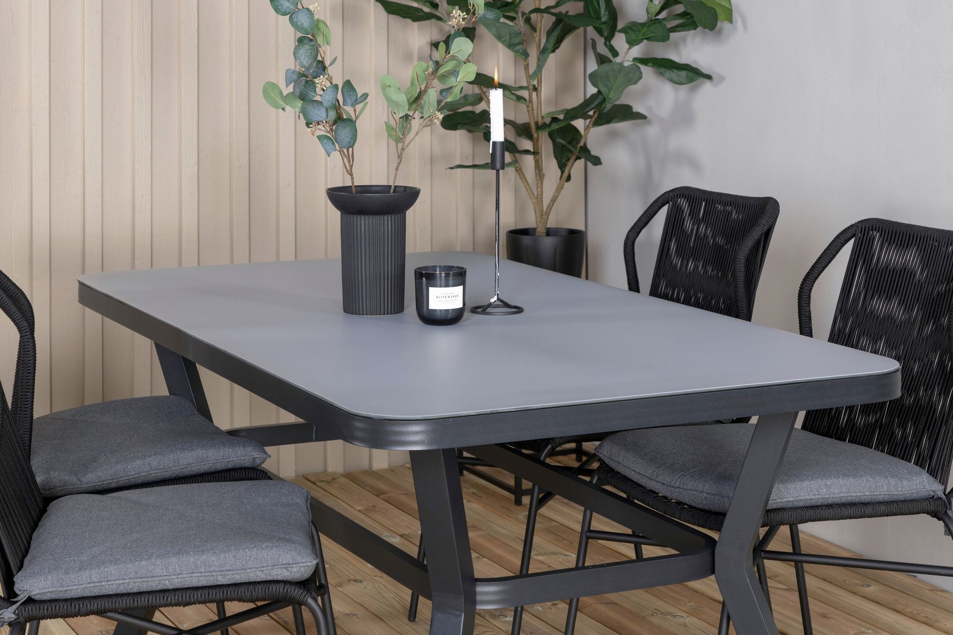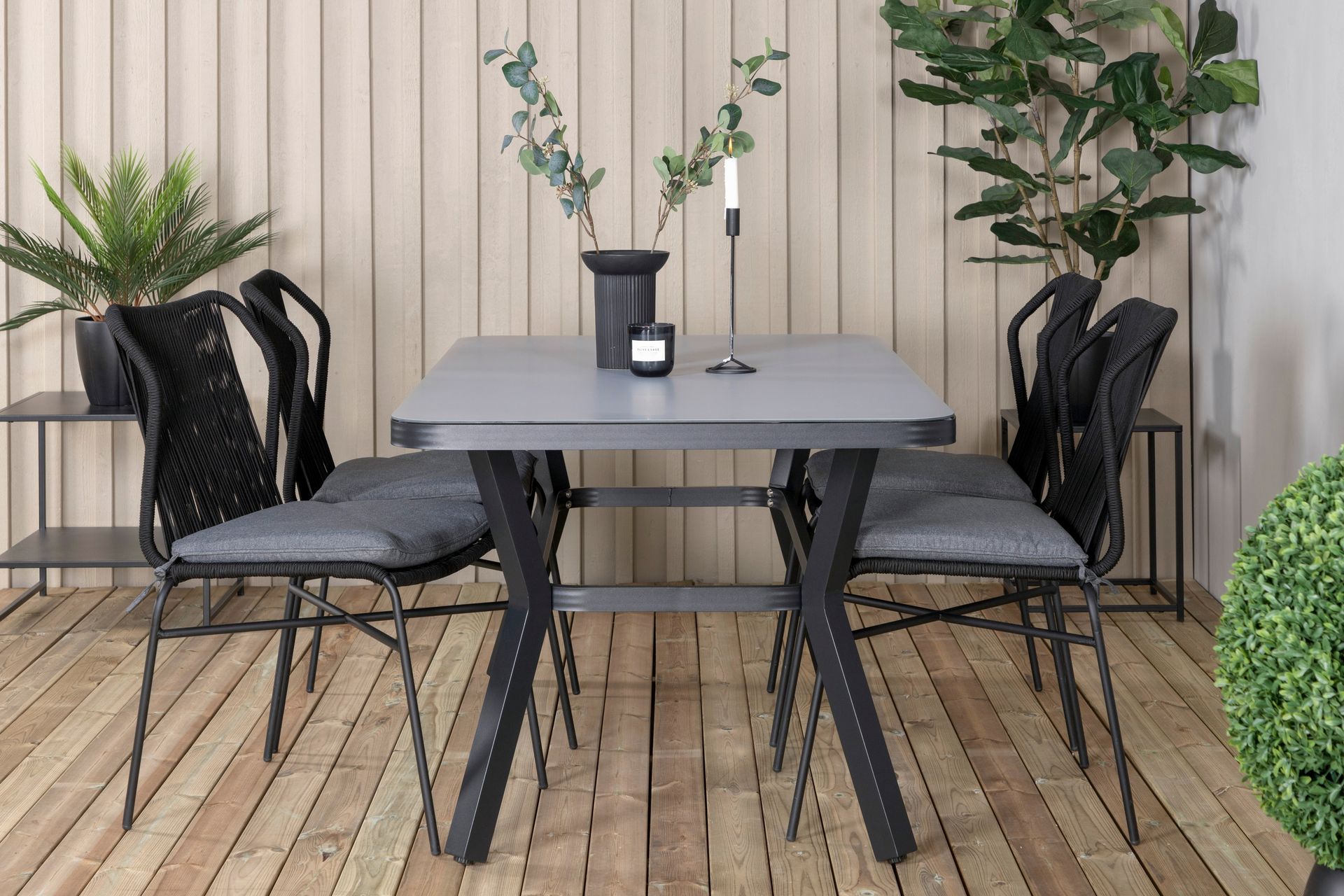 Venture Home Ruokailuryhmä Virya 160 cm 4 Julian tuolia Musta/Harmaa