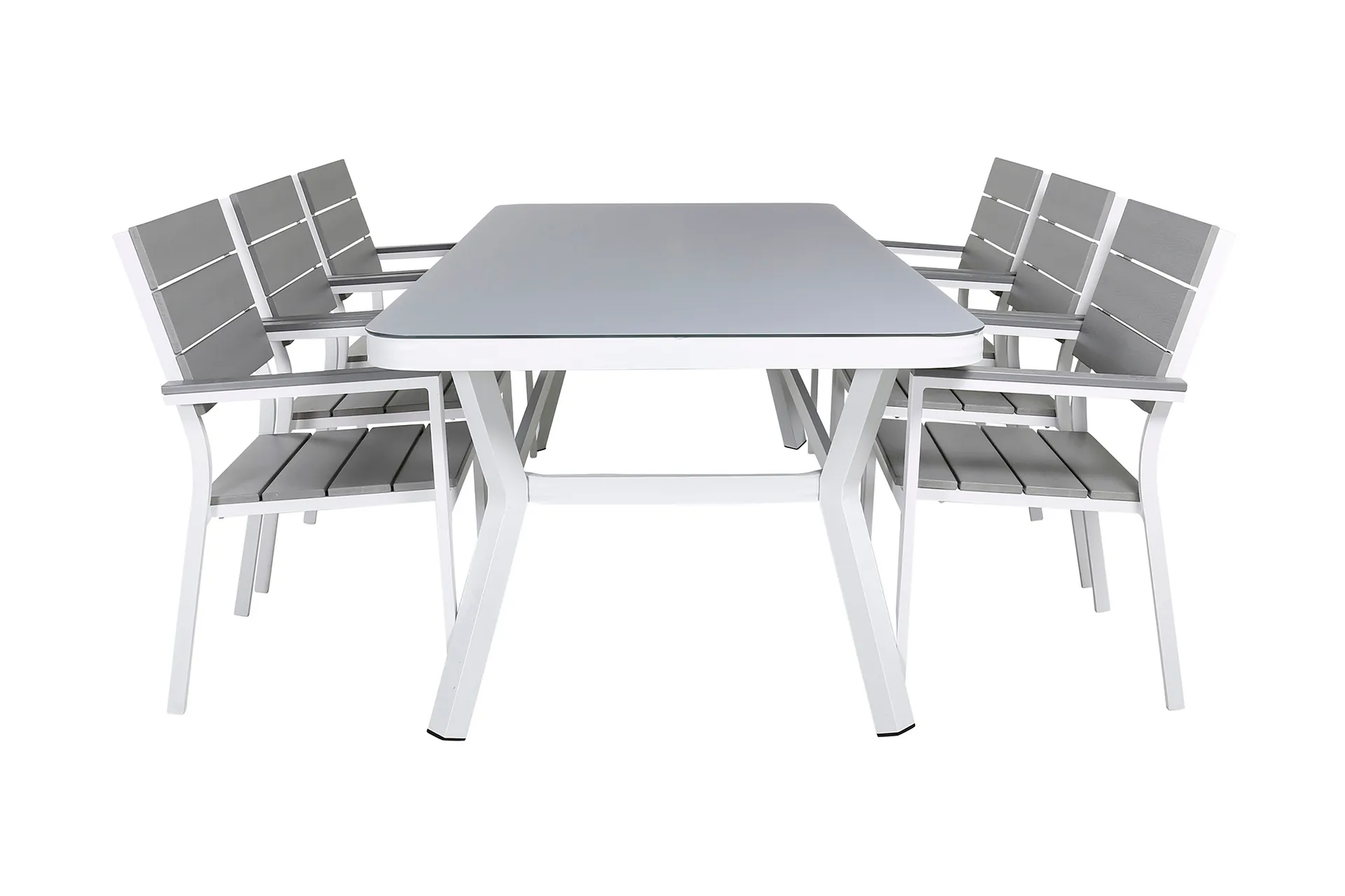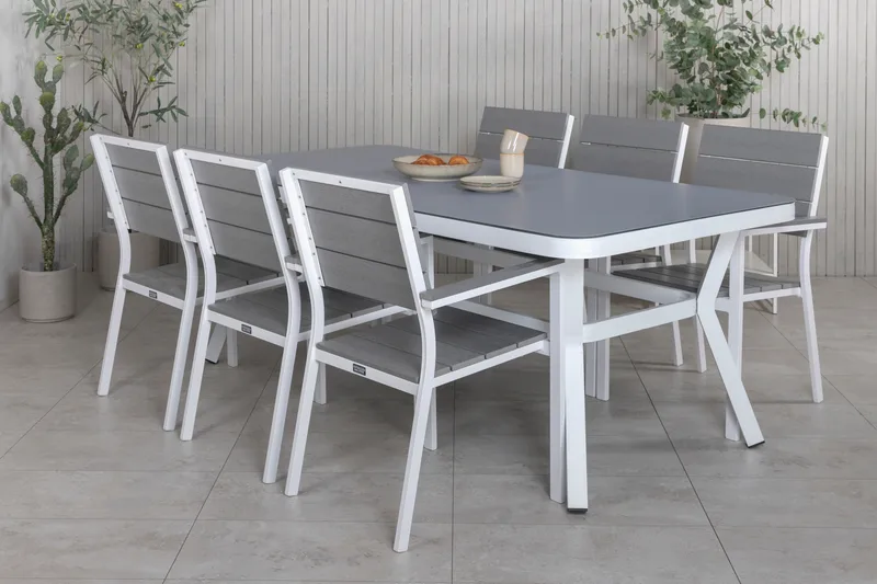 Venture Home Ruokailuryhmä Virya 160 cm 6 Levels tuolia Valkoinen/Harmaa