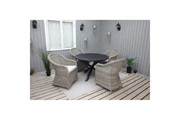 Ulkomöbeliryhmä Ø 112 cm pöytä & 4 Belize luonnonväriset tuolit Harmaa