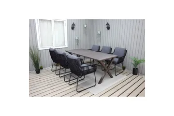 Ulkomöbeliryhmä Lifestyle Garden Portals 209 cm 8 kevyttä kaiverrustuolia