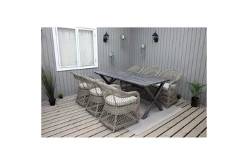 Ulkomöbeliryhmä Lifestyle Garden Portals 161 cm 6 kevyttä carver-tuolia