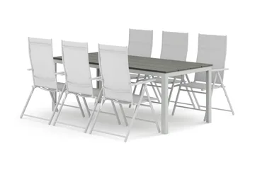 Tunis-ulkoruokailuryhmä 205x90 cm ja 6 Jenny-ruokatuolia
