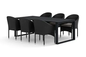 Tunis-ulkoruokailuryhmä 205x90 cm ja 6 Jenny-ruokatuolia