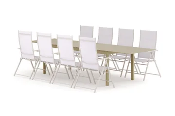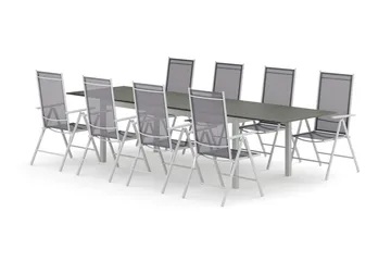 Tunis-ulkoruokailuryhmä, jatkettava 205/305x90 cm, 8 Monaco Light -säätötuolia