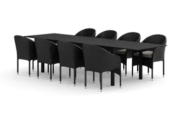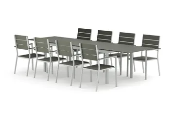 Tunis-ulkoruokailuryhmä, jatkettava 205/305x90 cm, 8 Tunis-pinotuolia