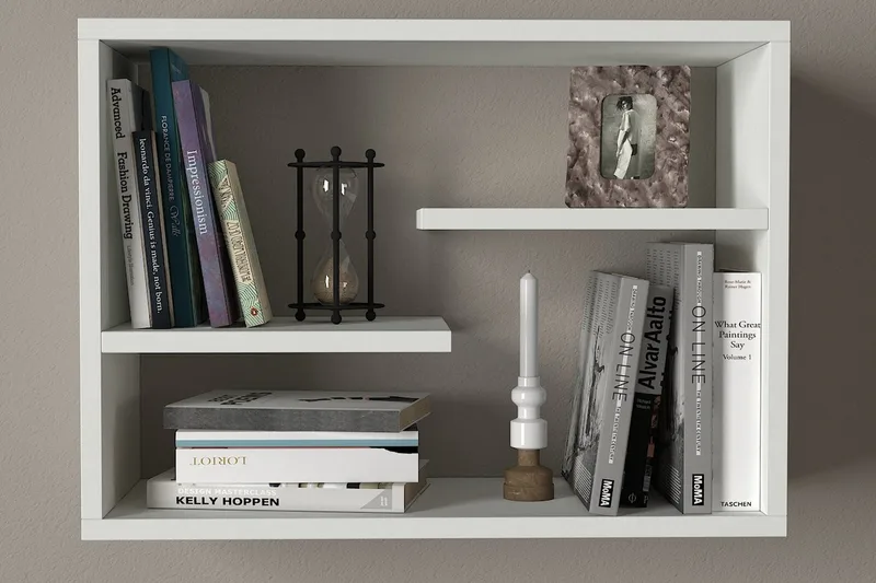 Hyllyn väri on valkoinen, mikä tekee siitä helposti yhdisteltävän erilaisiin sisustustyyleihin. Valkoinen väri luo raikkaan ja valoisan ilmeen tilaan, ja se sopii hyvin esimerkiksi moderniin tai skandinaaviseen sisustukseen.