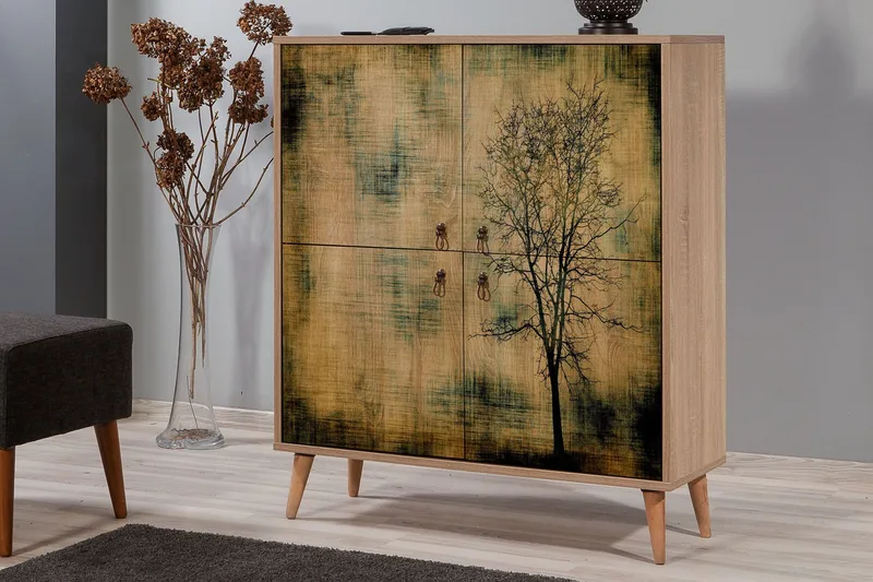 Luo kotiisi tyyli Dirk-sarjan kaapilla. Kaapissa on kaksi tai neljä ovea, joiden takana on näppärät hyllyt, joten senkki on sekä tyylikäs että käytännöllinen. Ovissa on koristeelliset vetimet. Uskalla rikkoa tilan seinän vaaleus ja yksitoikkoisuus näyttävällä kuviolla tai kauniilla väreillä. Dirk-sarjan kalusteita on saatavana hillityissä puunväreissä sekä malleissa, joiden etuosassa on upeita kuvioita ja värejä.