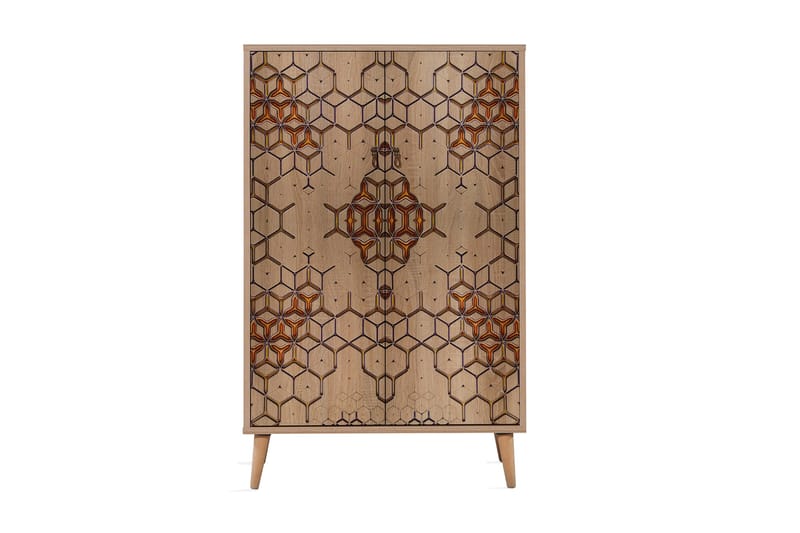 Kaapin materiaalityyppi on kestävä melamiini, joka takaa pitkän käyttöiän. Se sopii täydellisesti erilaisiin sisustustyyleihin ja tuo lämpöä ja tyylikkyyttä kotiisi. Kaapin väri on kaunis ruskea, ja jalkojen väri on myös ruskea, mikä luo harmonisen kokonaisuuden.